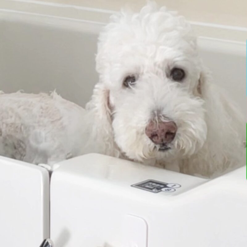 ドア付バスタブと昇降式トリミング台で、大型犬も楽々